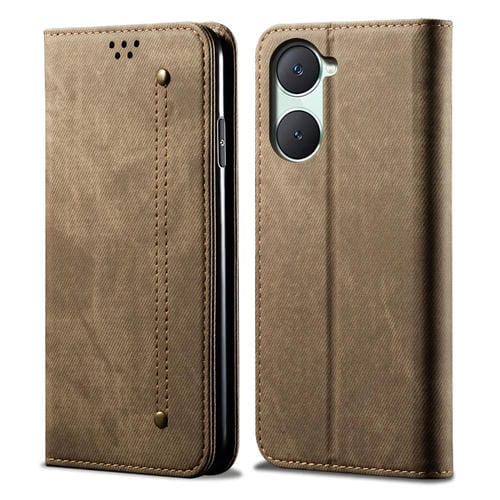 Para Vivo Y03 4G Funda para Teléfono de Cuero con Tapa con Textura Vaquera (Caqui)