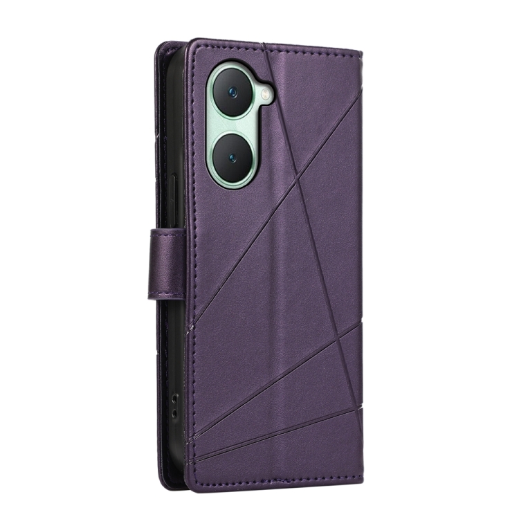Para Vivo Y03 4G Pu Funda para Teléfono con Línea En Relieve con Textura de Cuero Genuino (Púrpura)