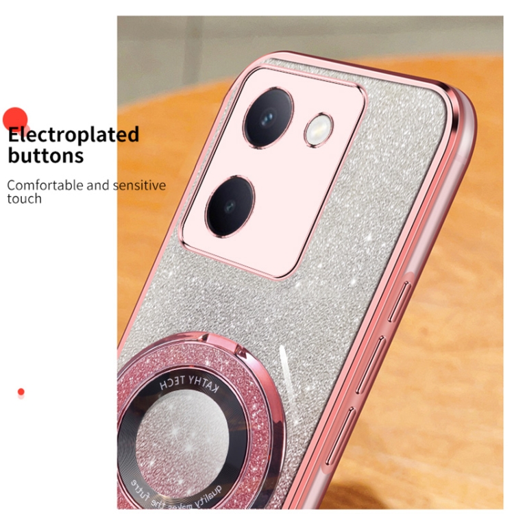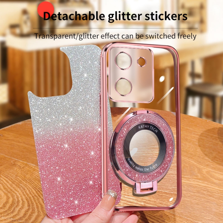 Para Vivo Y100 5G Estuche para Teléfono de TPU con Soporte Redondo y Brillo Degradado Plateado (Rosa)