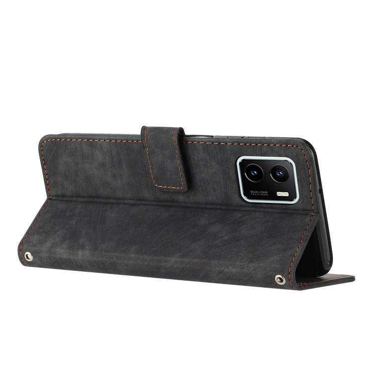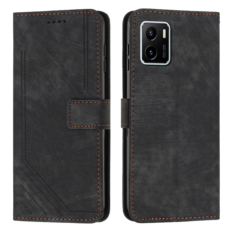 Para Vivo Y15S / Y15A / Y01 Skin Feel Stripe Pattern Funda de Cuero para Teléfono con Cordón (Negro)