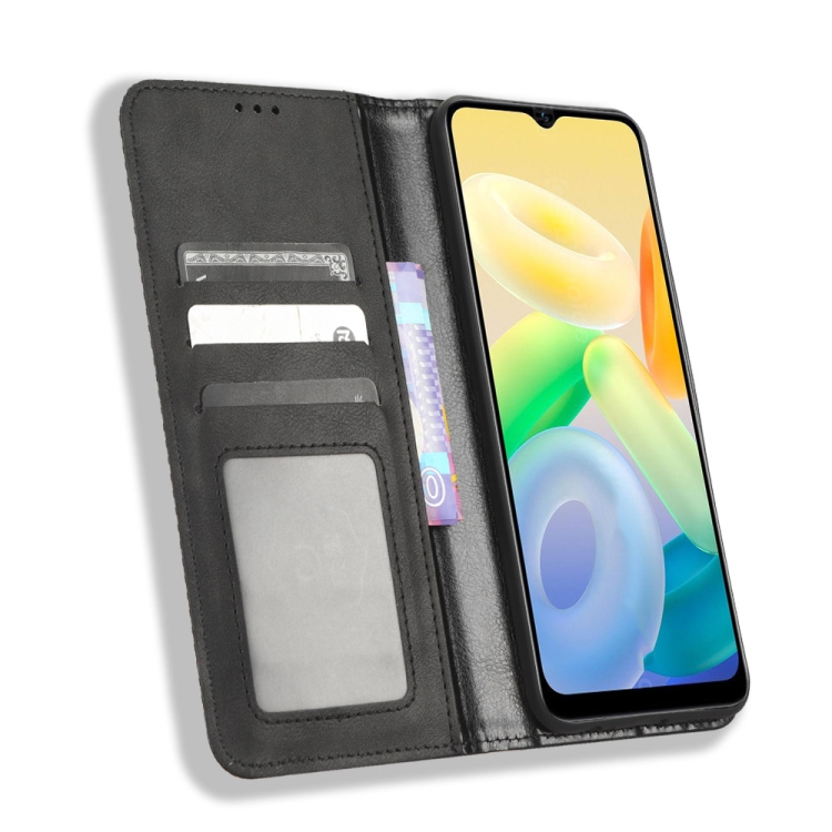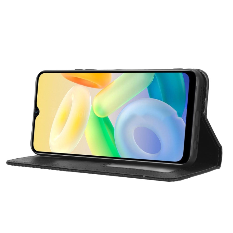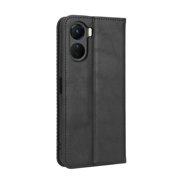 Para Vivo Y16 / Iqoo Z7I Hebilla Magnética Textura Retro Funda de Cuero para Teléfono (Negro)