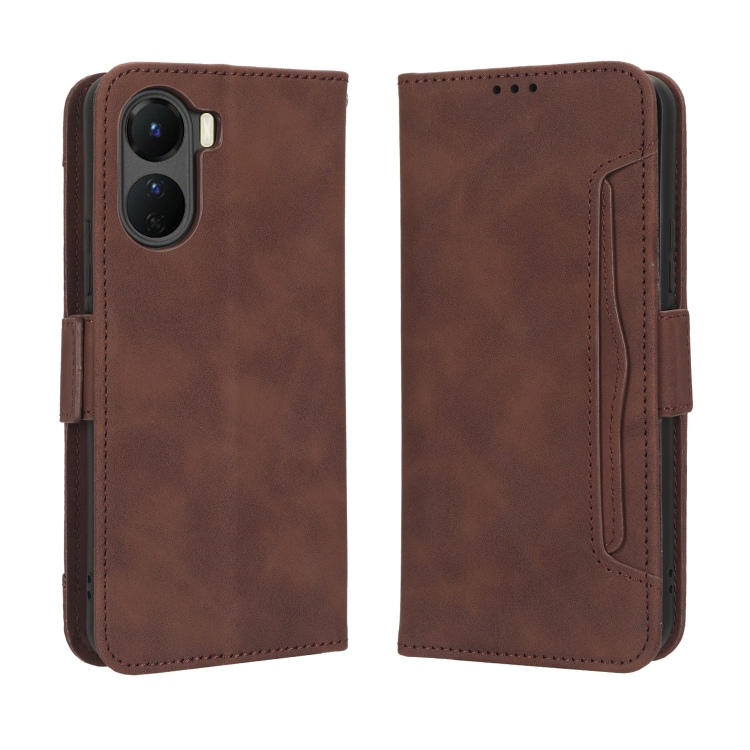 Para Vivo Y16 / Iqoo Z7I Skin Feel Becerro Textura Ranuras para Tarjetas Funda de Cuero para Teléfono (Marrón)