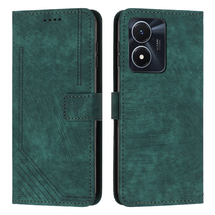 Para Vivo Y16 / Y02S Skin Feel Stripe Pattern Funda de Cuero para Teléfono con Cordón (Verde)