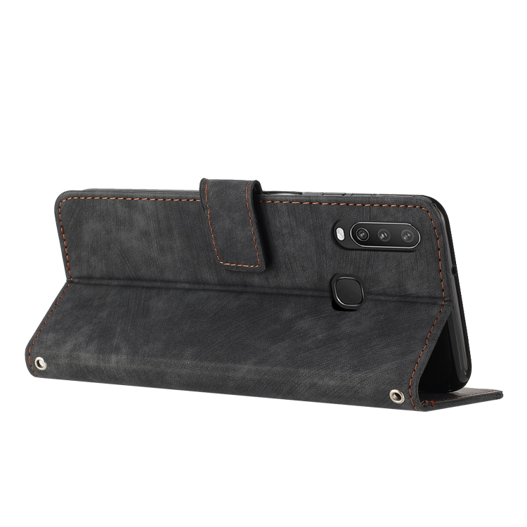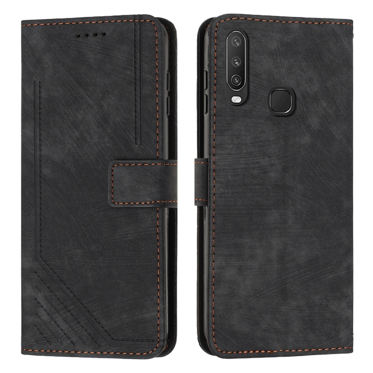 Para Vivo Y17 / Y15 / Y12 / U10 / Y11 / Y3 Skin Feel Stripe Pattern Funda de Cuero para Teléfono con Cordón (Negro)