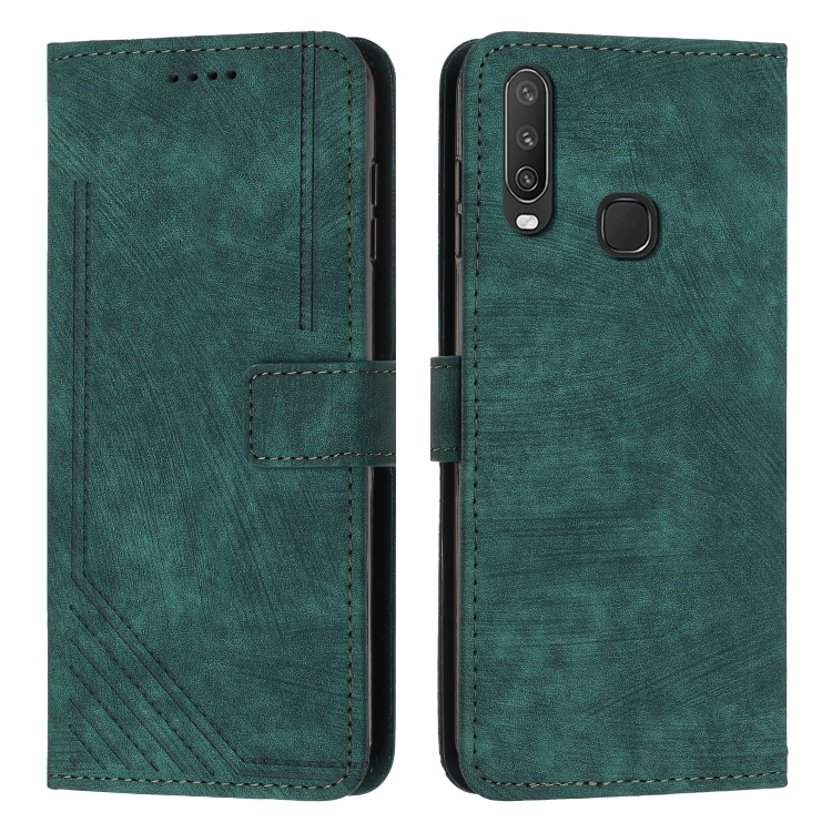 Para Vivo Y17 / Y15 / Y12 / U10 / Y11 / Y3 Skin Feel Stripe Pattern Funda de Cuero para Teléfono con Cordón (Verde)