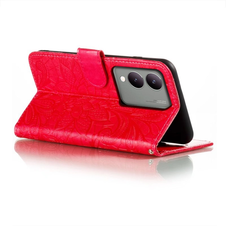 Para Vivo Y17S Funda para Teléfono de Cuero con Tapa y Estampado de Flores de Encaje (Rojo)