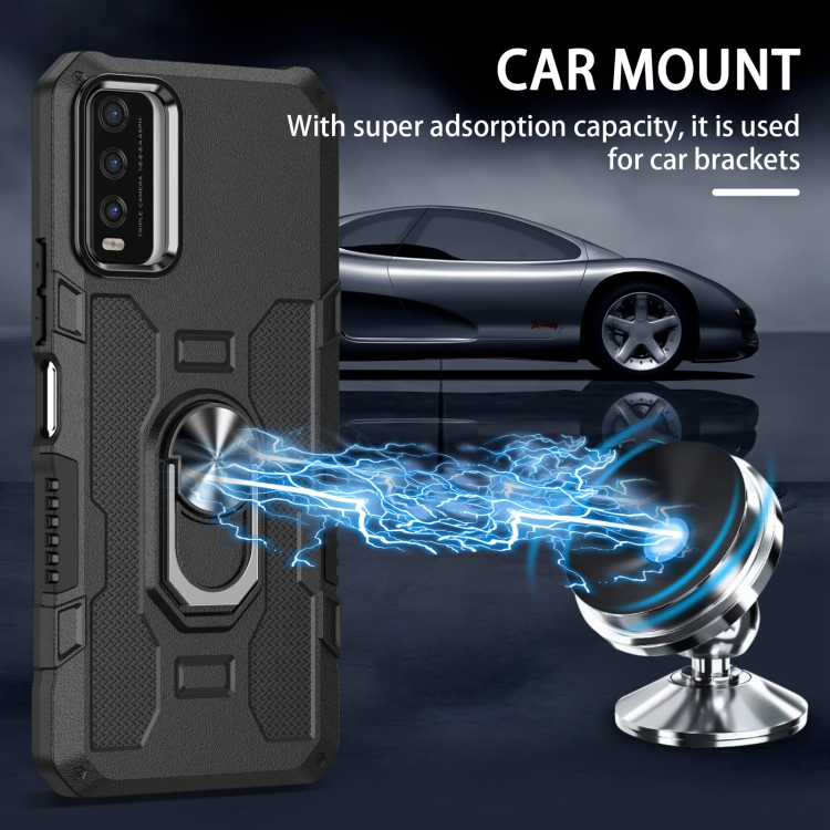 Para Vivo Y20 Ring Holder Armor Hybrid Phone Case (Negro)