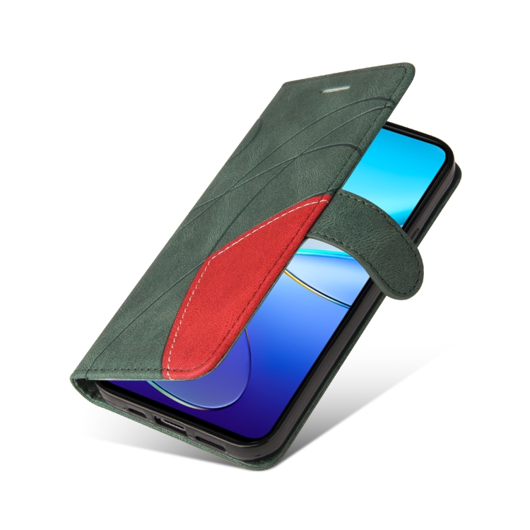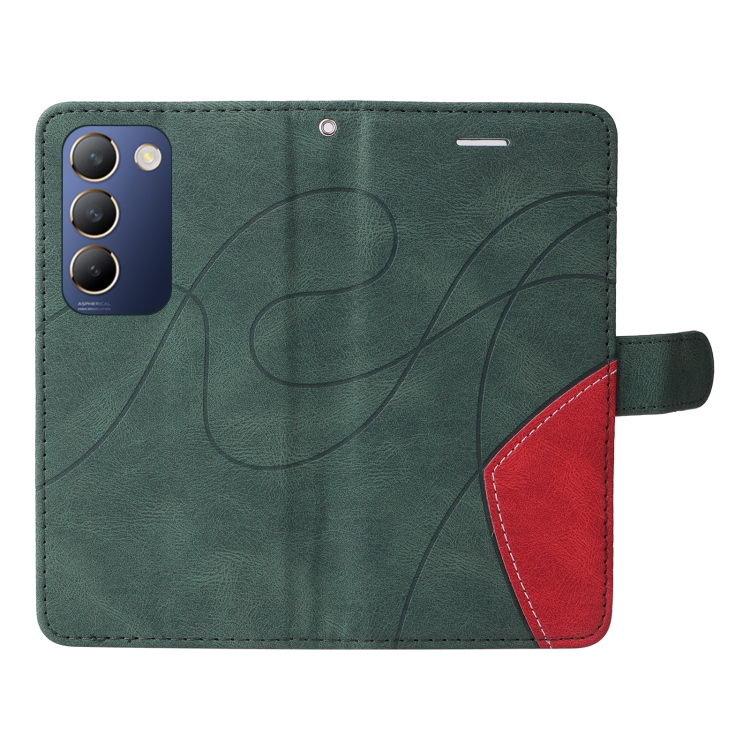 Para Vivo Y200E 5G Global / V30 Lite India Funda de Cuero con Tapa y Empalme de Dos Colores (Verde)