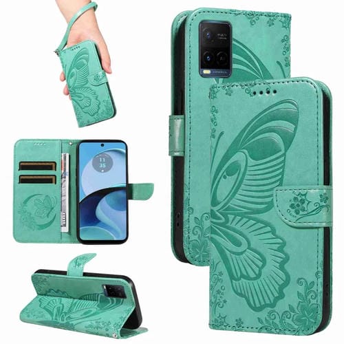 Para Vivo Y21 / Y21S / Y33S Funda para Teléfono de Cuero con Relieve de Mariposa y Cola de Golondrina (Verde)