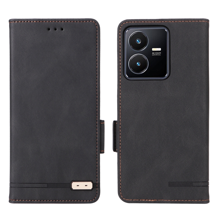 Para Vivo Y22S / Y35 Caja de Teléfono de Cuero con Cierre Magnético (Negro)