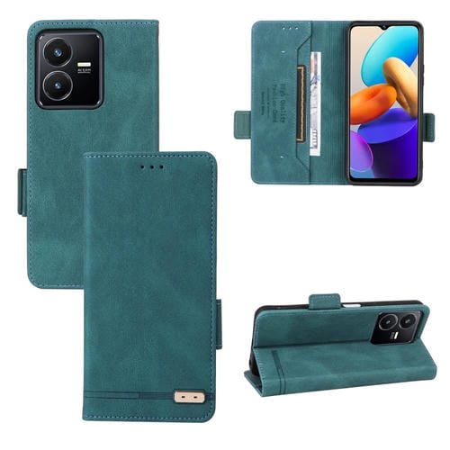 Para Vivo Y22S / Y35 Caja de Teléfono de Cuero con Cierre Magnético (Verde)