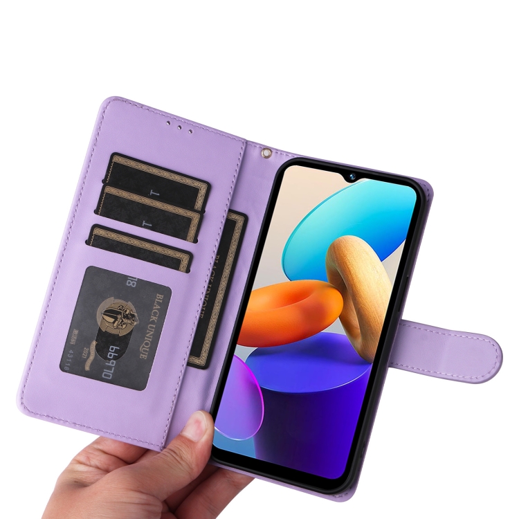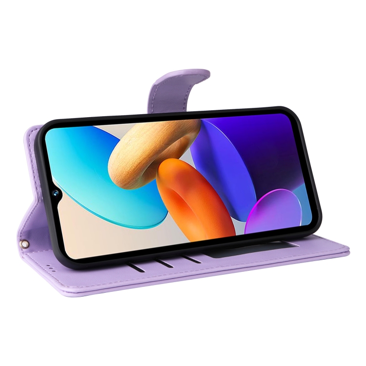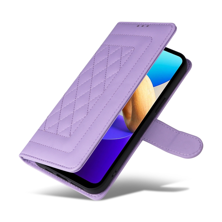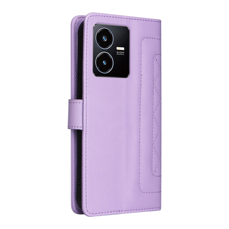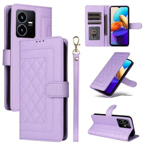 Para Vivo Y22S / Y35 Funda para Teléfono con Tapa de Cuero Diamond Lattice (Púrpura Claro)