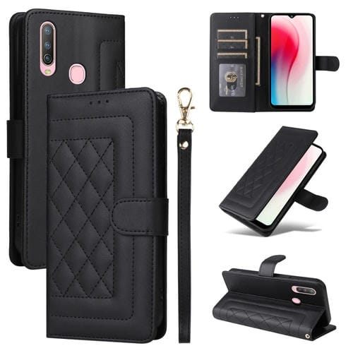 Para Vivo Y3 / Y17 Funda para Teléfono con Tapa de Cuero Diamond Lattice (Negro)