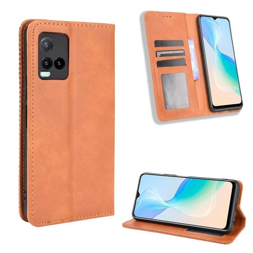 Para Vivo Y33T / Y33S / Y21 / Y21S Hebilla Magnética Textura Retro Funda de Cuero para Teléfono (Marrón)