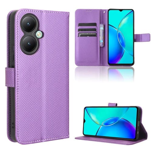 Para Vivo Y35 + Caja de Teléfono de Cuero con Textura de Diamante (Púrpura)