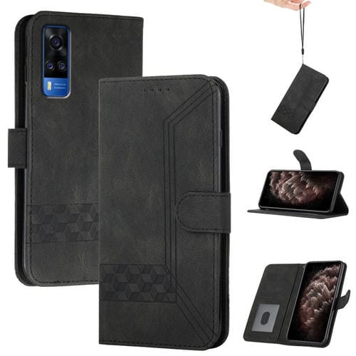 Para Vivo Y51 2020 India / Y31 4G India Funda para Teléfono de Cuero con Tapa y Sensación de Piel Cúbica (Negro)