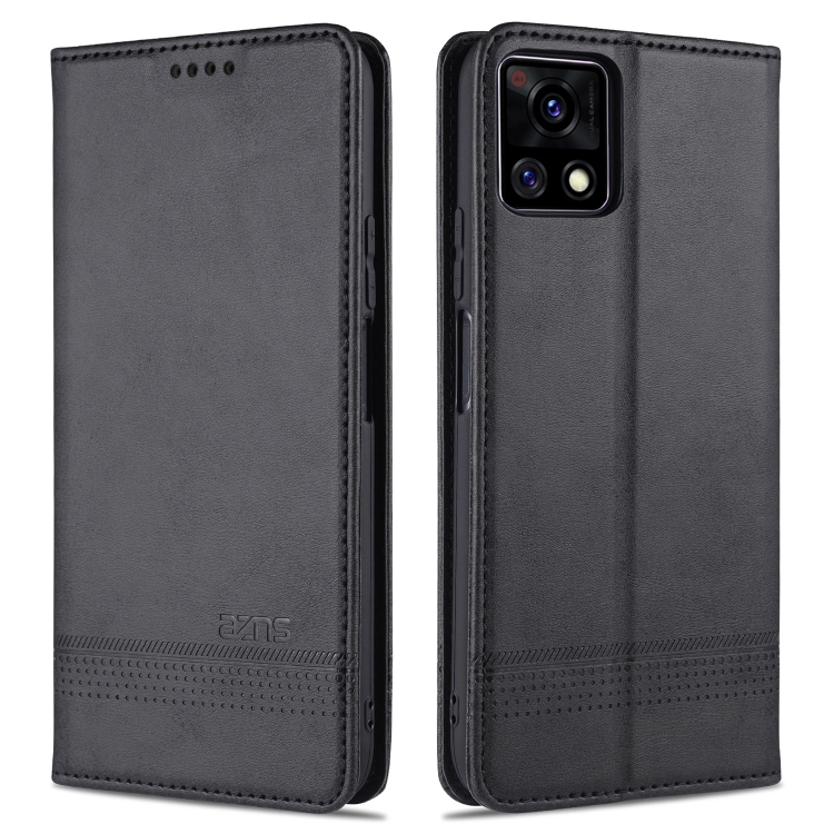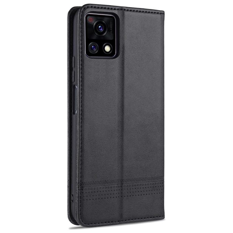 Para Vivo Y52S Azns Estuche de Cuero con Tapa Magnética con Textura de Becerro Horizontal con Ranuras para Tarjetas, Soporte y Billetera (Negro)