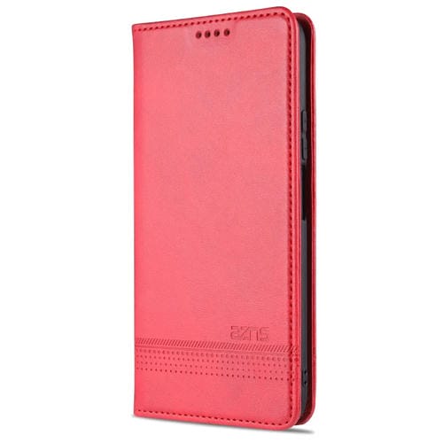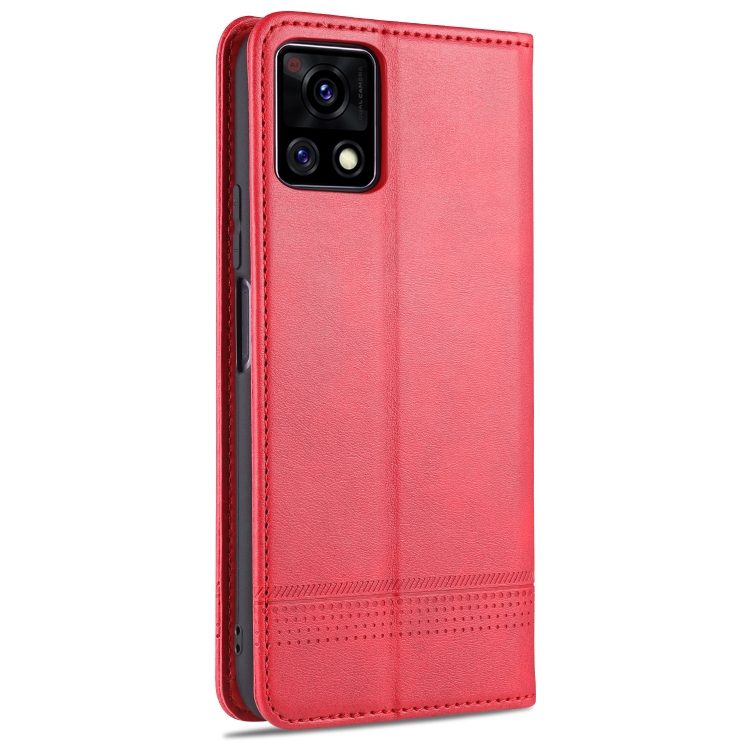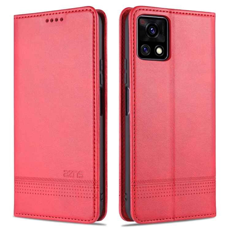 Para Vivo Y52S Azns Estuche de Cuero con Tapa Magnética con Textura de Becerro Horizontal con Ranuras para Tarjetas, Soporte y Billetera (Rojo)