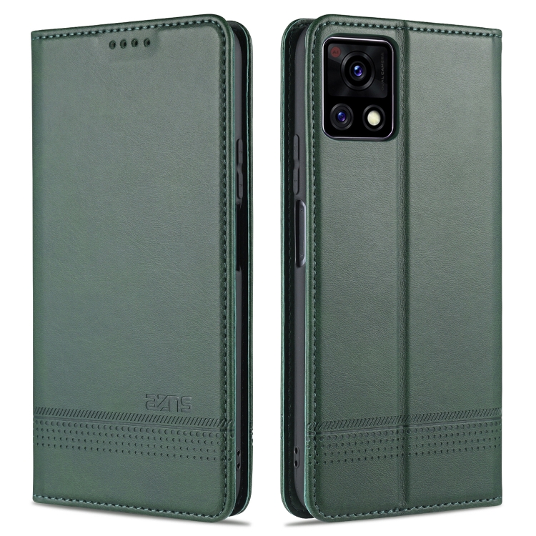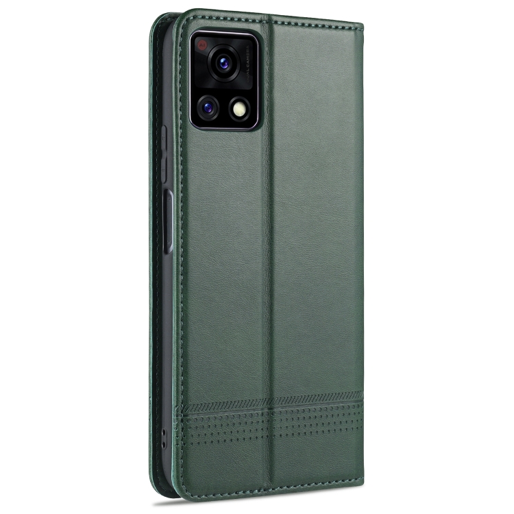 Para Vivo Y52S Azns Estuche de Cuero con Tapa Magnética con Textura de Becerro Horizontal con Ranuras para Tarjetas, Soporte y Billetera (Verde Oscuro)