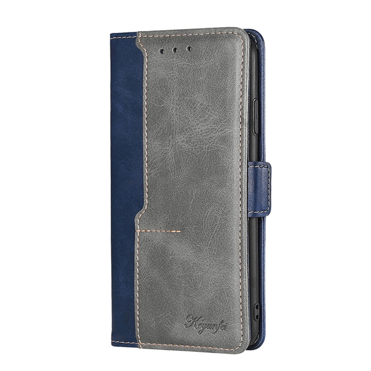 Para Vivo Y52T Caja de Teléfono de Cuero con Hebilla Lateral de Color de Contraste (Azul + Gris)