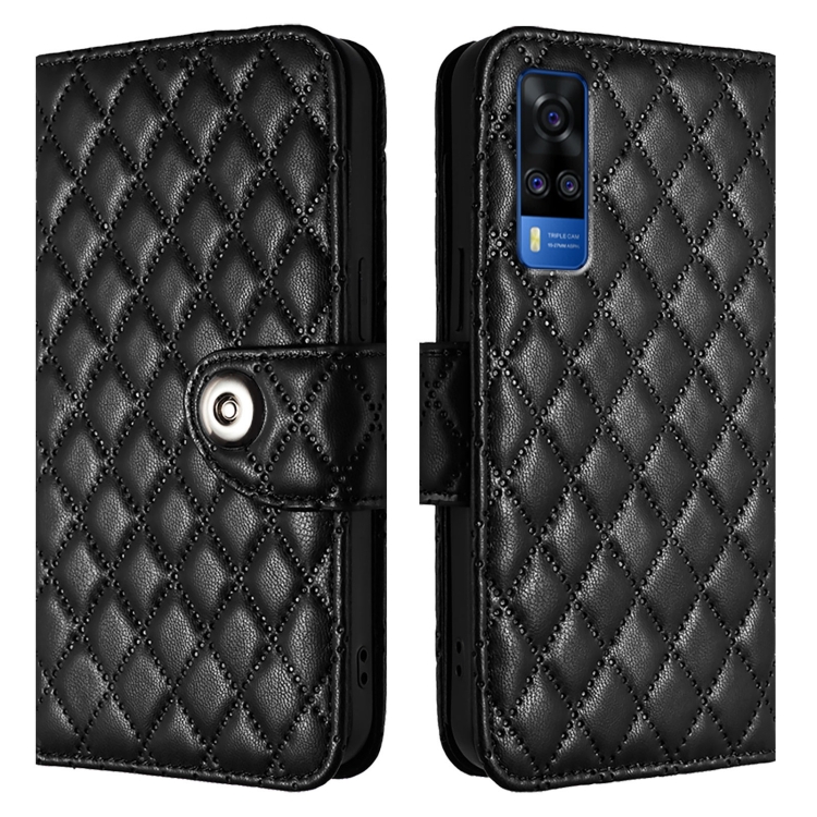 Para Vivo Y53S 5G / Y51A / Y33 Funda para Teléfono con Tapa de Cuero con Textura Rómbica y Cordón (Negro)