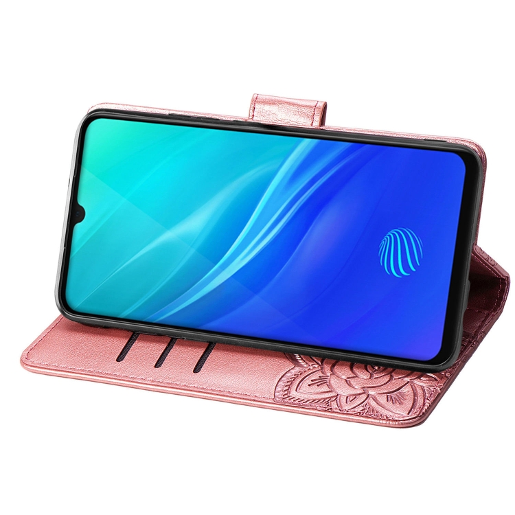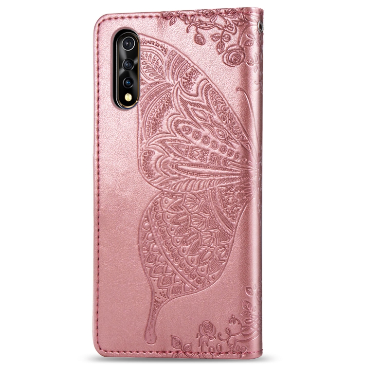 Para Vivo Y7S / S1 Butterfly Love Flowers Funda de Cuero con Tapa Horizontal En Relieve con Soporte, Ranuras para Tarjetas, Billetera y Cordón (Oro Rosa)