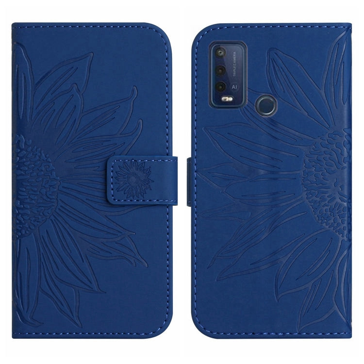Funda Flip de Cuero Wiko Power U30 Skin Feel Sun Flower con Cordón (Azul Oscuro)