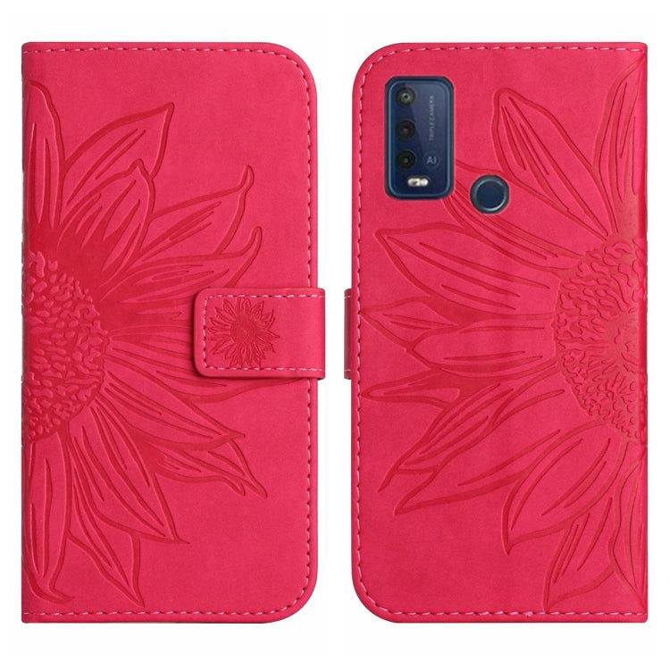 Funda de Cuero Flip para Wiko Power U30 con Cordón y Diseño Sun Flower (Rose Red)