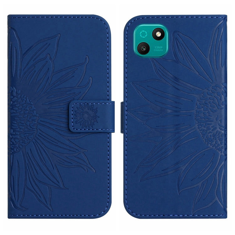 Funda de Cuero Flip para Wiko T10 Skin Feel con Cordón (Azul Oscuro) y Diseño Sun Flower