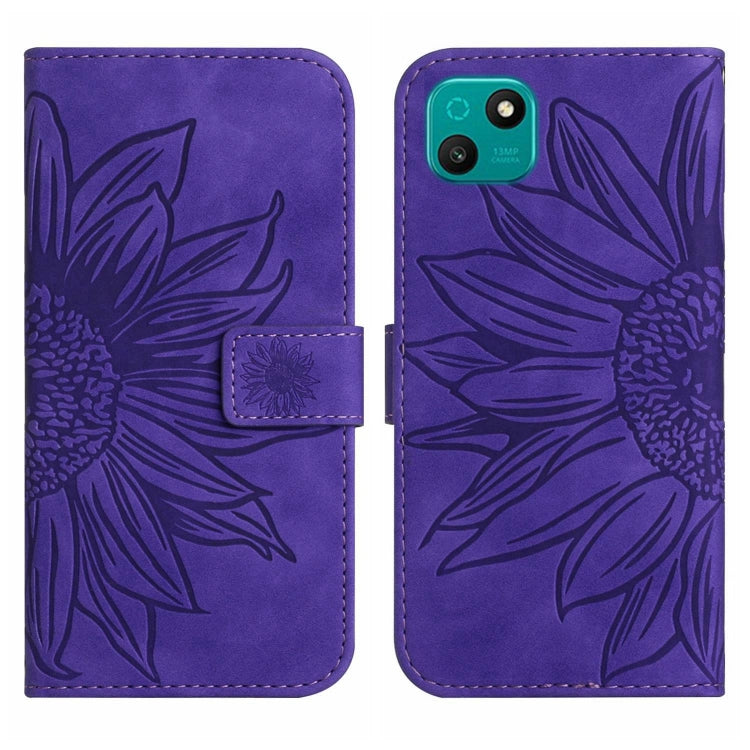 Funda Flip de Cuero para Wiko T10 Skin Feel con Cordón y Diseño Sun Flower (Púrpura Oscuro)