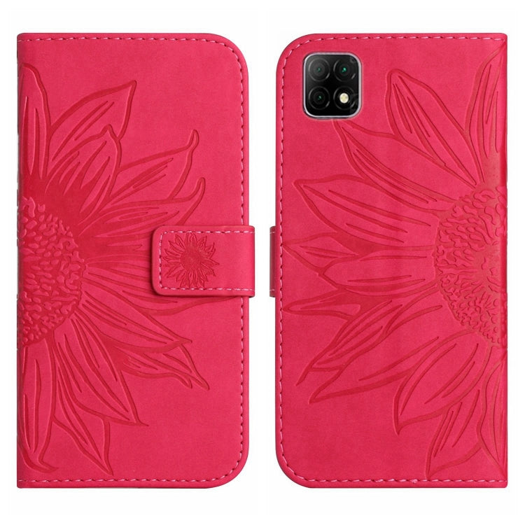 Funda Flip de Cuero Wiko T3 Skin Feel con Cordón y Patrón Sun Flower (Rose Red)