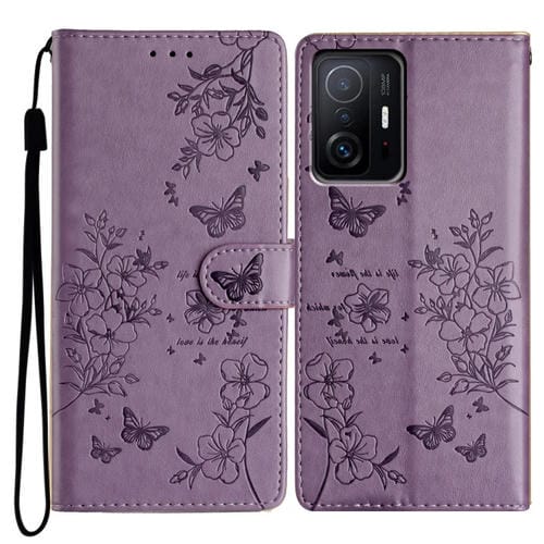 Para Xiaomi 11T / 11T Pro Funda de Cuero para Teléfono con Mariposas y Flores (Púrpura)