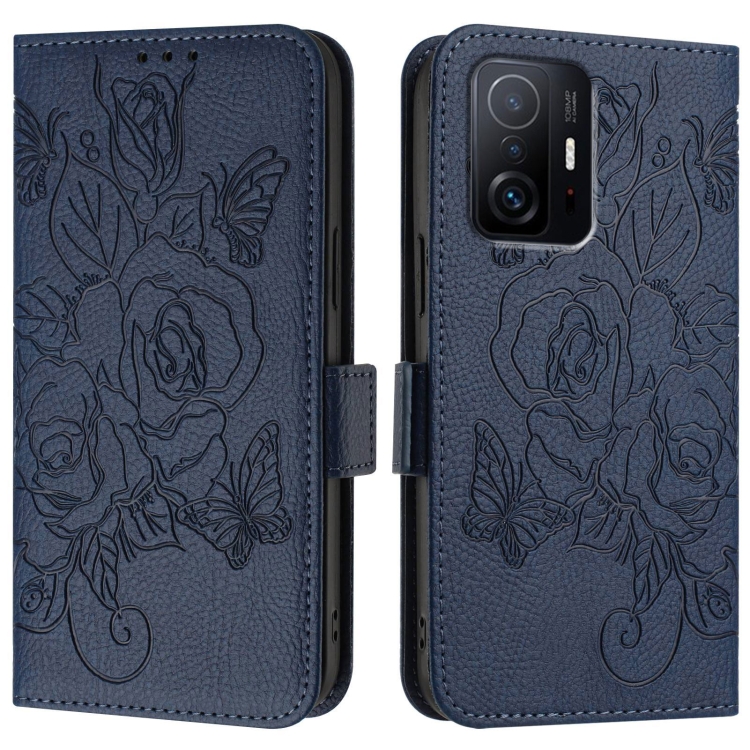 Para Xiaomi 11T / 11T Pro Funda de Teléfono de Cuero Antirrobo Rfid con Relieve Rosa (Azul Oscuro)