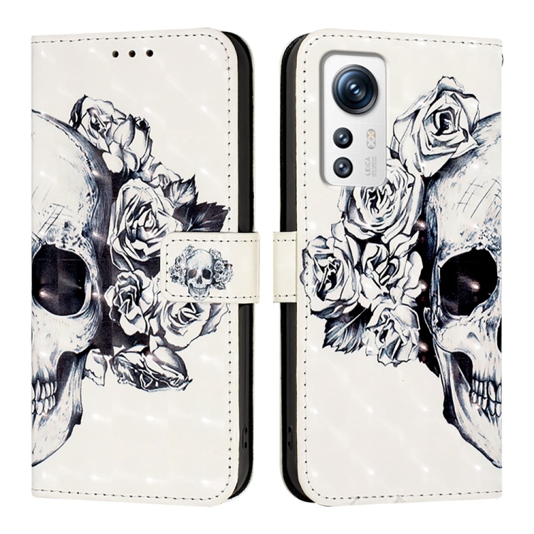 Para Xiaomi 12/12X / 12S Funda para Teléfono de Cuero con Tapa Horizontal con Pintura 3D (Calavera)