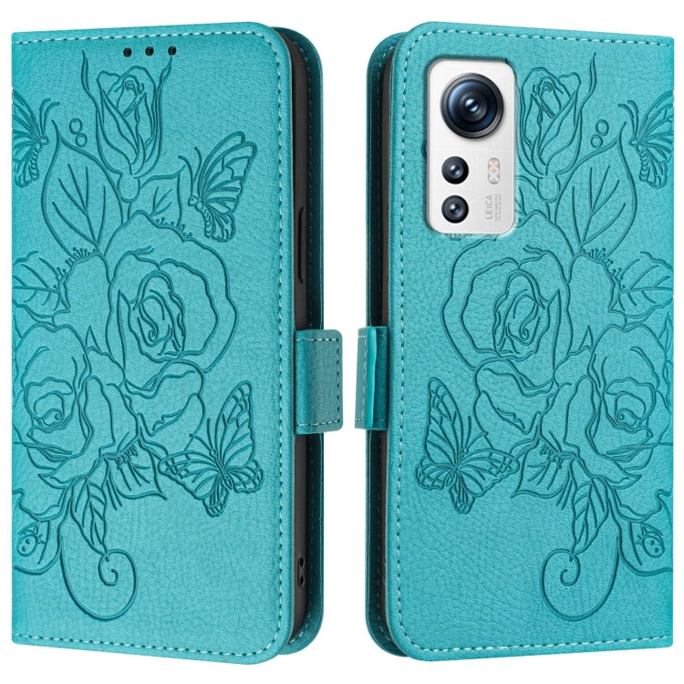 Para Xiaomi 12 5G / 12X 5G / 12S 5G Funda de Cuero Antirrobo Rfid con Relieve Rosa (Azul Claro)