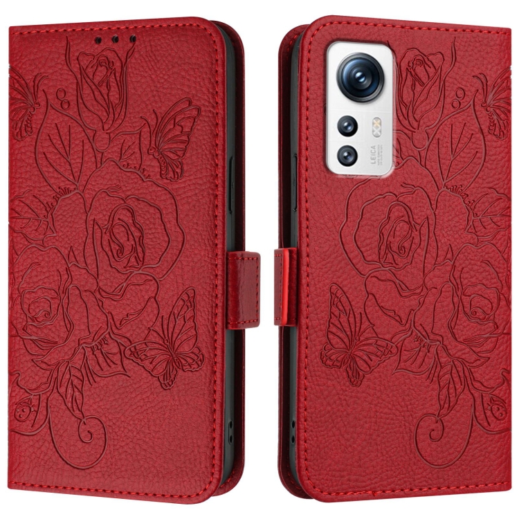 Para Xiaomi 12 5G / 12X 5G / 12S 5G Funda de Cuero Antirrobo Rfid con Relieve Rosa (Rojo)