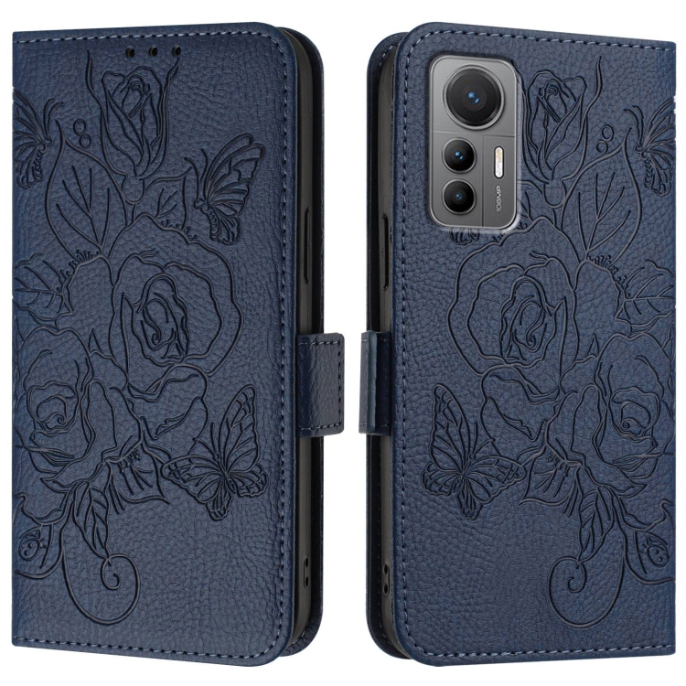 Para Xiaomi 12 Lite Funda de Cuero Antirrobo Rfid Rose En Relieve para Teléfono (Azul Oscuro)