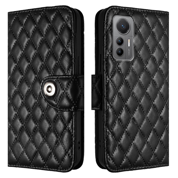 Para Xiaomi 12 Lite Funda de Cuero con Tapa con Textura Rómbica y Cordón (Negro)