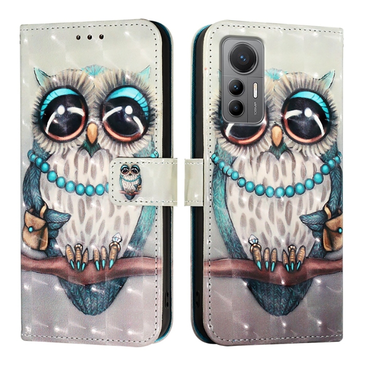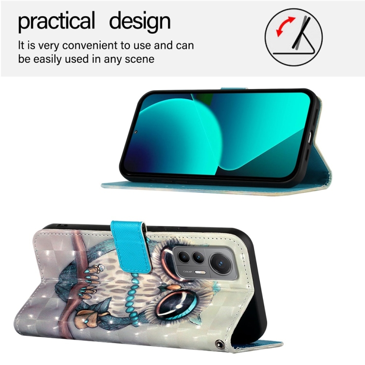 Para Xiaomi 12 Lite Funda de Teléfono de Cuero con Tapa Horizontal con Pintura 3D (Búho Gris)