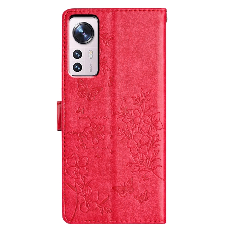 Para Xiaomi 12 Pro Funda de Cuero para Teléfono con Mariposas y Flores (Rojo)