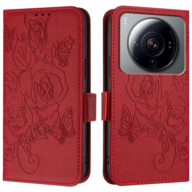 Para Xiaomi 12S Funda de Teléfono de Cuero Antirrobo Rfid con Relieve Rosa Ultra (Rojo)