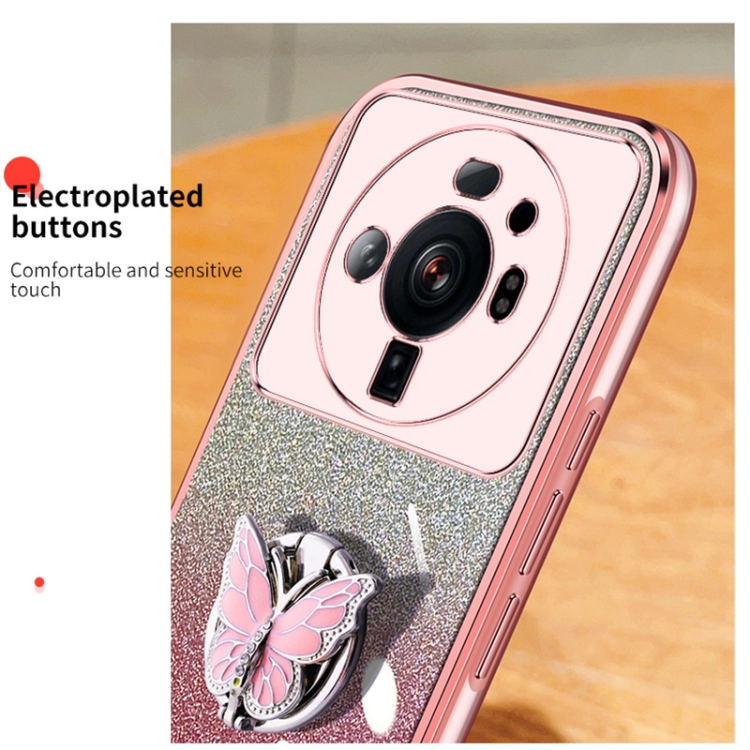 Para Xiaomi 12S Funda para Teléfono de TPU con Soporte de Mariposa con Brillo Degradado Ultra Plateado (Negro)