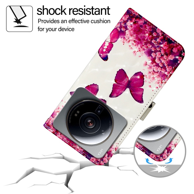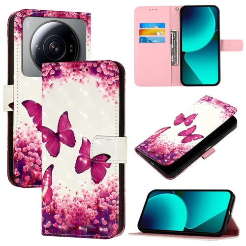 Para Xiaomi 12S Ultra Funda de Teléfono de Cuero con Tapa Horizontal con Pintura 3D (Mariposa Rosa)