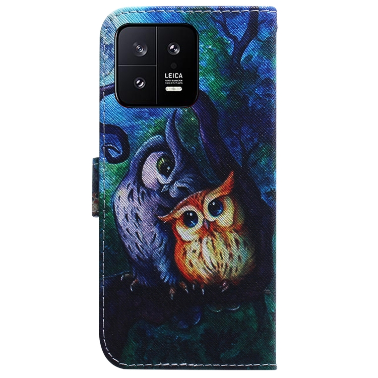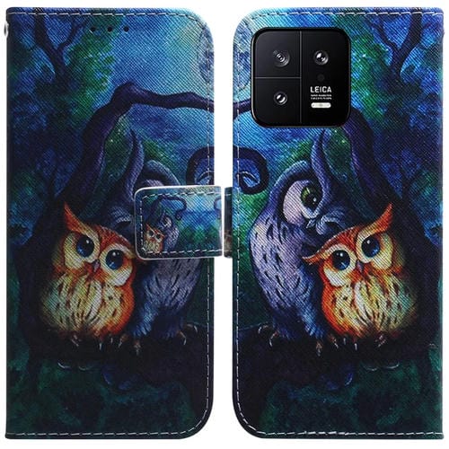 Para Xiaomi 13 5G Estuche de Teléfono de Cuero con Tapa de Dibujo Coloreado (Búho de Pintura al Óleo)