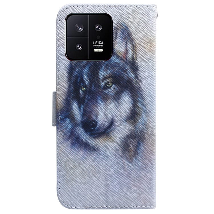 Para Xiaomi 13 5G Estuche de Teléfono de Cuero con Tapa de Dibujo Coloreado (Lobo Blanco)