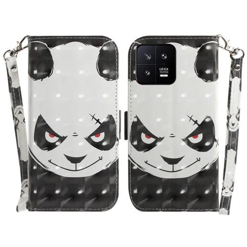 Para Xiaomi 13 5G Estuche de Teléfono de Cuero con Tapa Horizontal de Color 3D (Oso Enojado)
