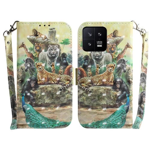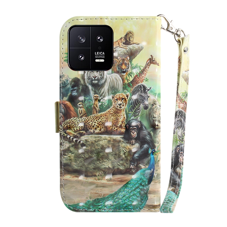 Para Xiaomi 13 5G Estuche de Teléfono de Cuero con Tapa Horizontal de Color 3D (Zoo)