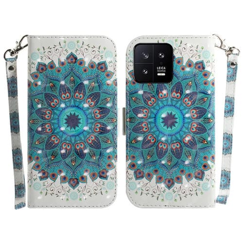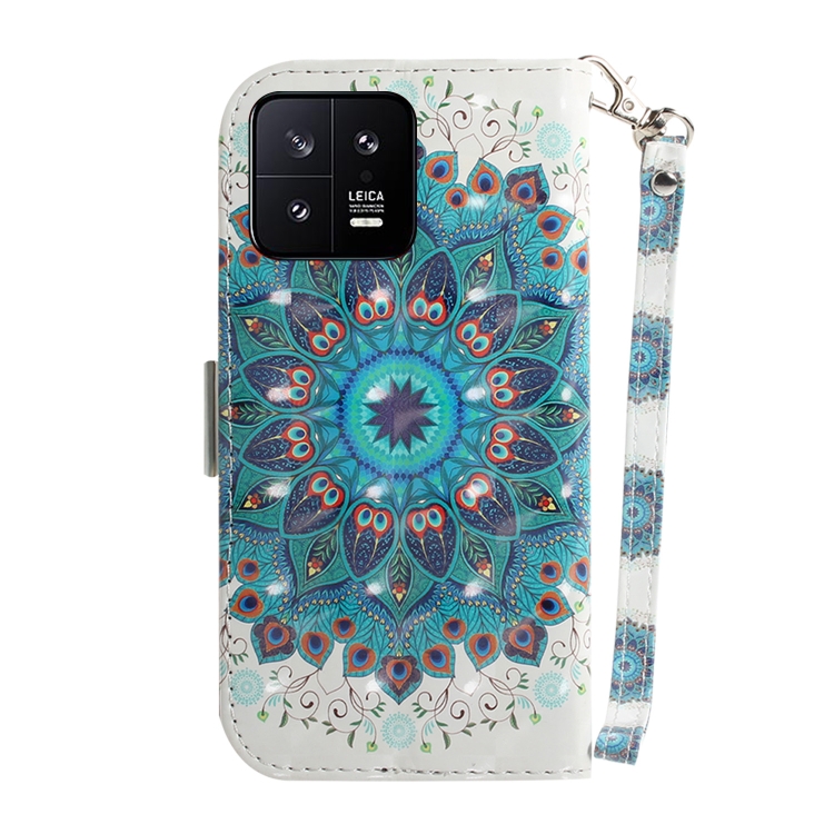 Para Xiaomi 13 5G Estuche para Teléfono de Cuero con Tapa Horizontal de Color 3D (Guirnalda de Pavo Real)