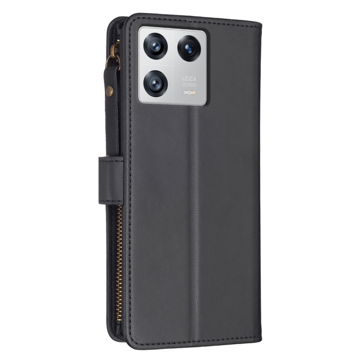 Para Xiaomi 13 9 Ranuras para Tarjetas Cremallera Cartera Funda de Cuero con Tapa para Teléfono (Negro)