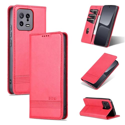 Para Xiaomi 13 Azns Funda de Teléfono con Tapa de Cuero con Textura de Becerro Magnético (Rojo)